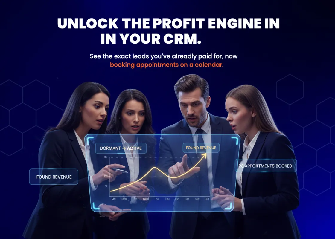 Turn forgotten leads into fresh revenue. Our AI re-engages the people you already paid to generate — and books them straight into your calendar within days. No new ad spend. No wasted time. Just found money.